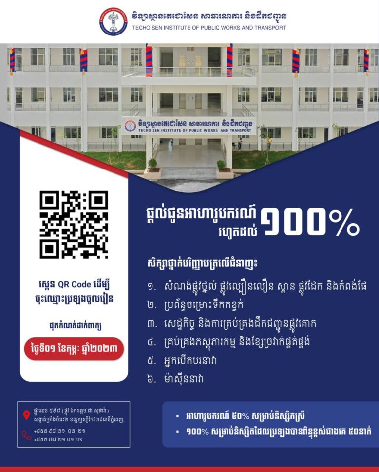 ឱកាសទទួលបានអាហារូបករណ៍១០០% មកដល់ហើយ សម្រាប់ប្អូនៗសិស្សានុសិស្ស ដែលទើបតែចេញលទ្ធផល ប្រឡងមធ្យមសិក្សាទុតិយភូមិថ្មីៗនេះ។