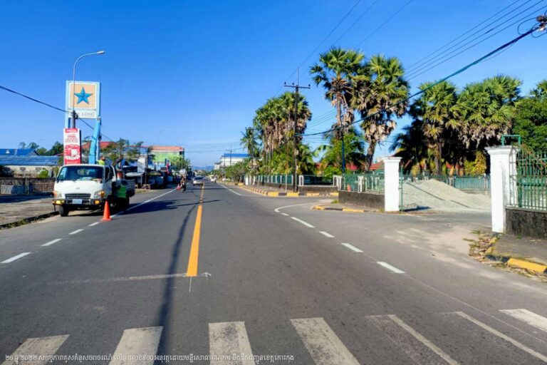 មន្ទីរសាធារណការ និងដឹកជញ្ជូនខេត្តកោះកុង បន្តការងារគូសគំនូសសញ្ញាចរាចរណ៍លើផ្លូវលេខ៩០០ ក្នុងក្រុងខេមរភូមិន្ទ
