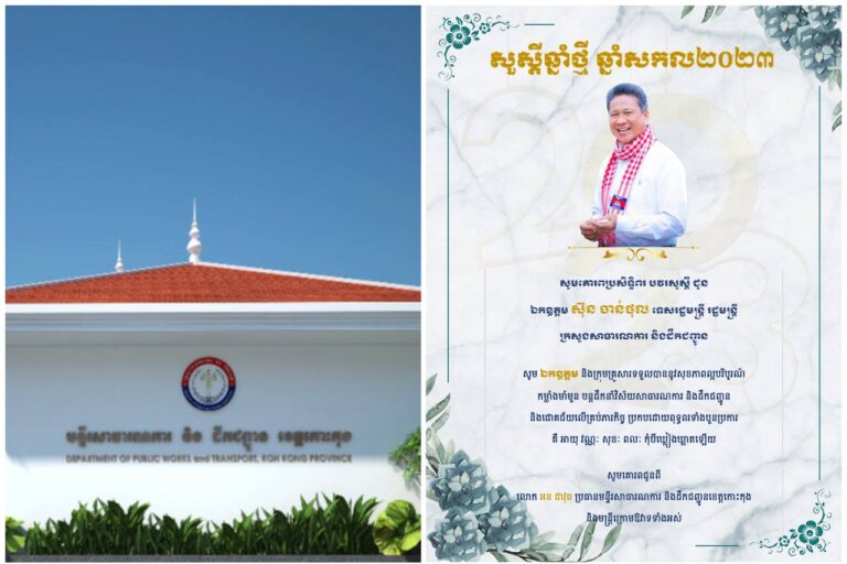 សារលិខិតជូនពរ គោរពជូន ឯកឧត្តម ស៊ុន ចាន់ថុល ទេសរដ្ឋមន្ត្រី រដ្ឋមន្ត្រី ក្រសួងសាធារណការ និងដឹកជញ្ជូន ក្នុងឱកាសចូលឆ្នាំថ្មី ឆ្នាំសកល ២០២៣
