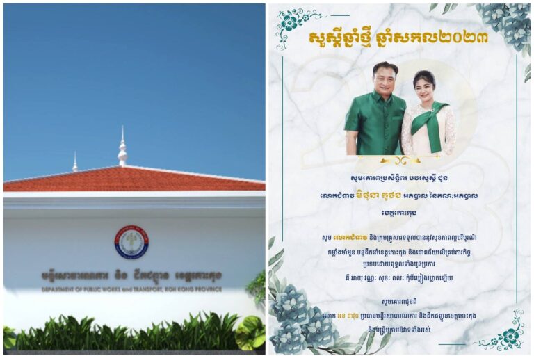 សារលិខិតជូនពរ គោរពជូន លោកជំទាវ មិថុនា ភូថង អភិបាល នៃគណៈអភិបាលខេត្តកោះកុង ក្នុងឱកាសចូលឆ្នាំថ្មី ឆ្នាំសកល ២០២៣
