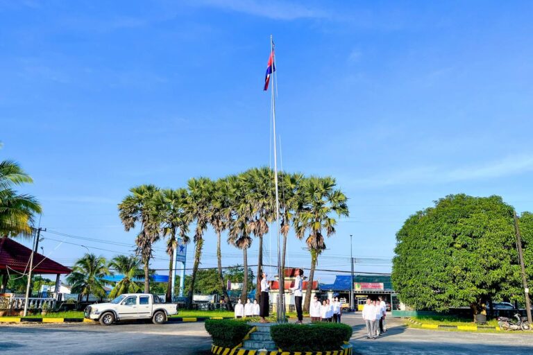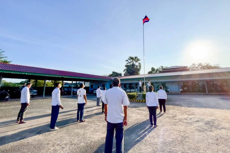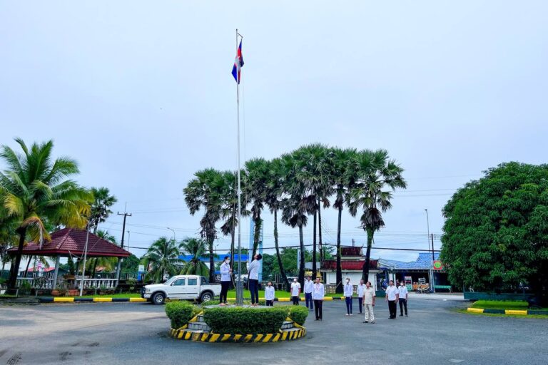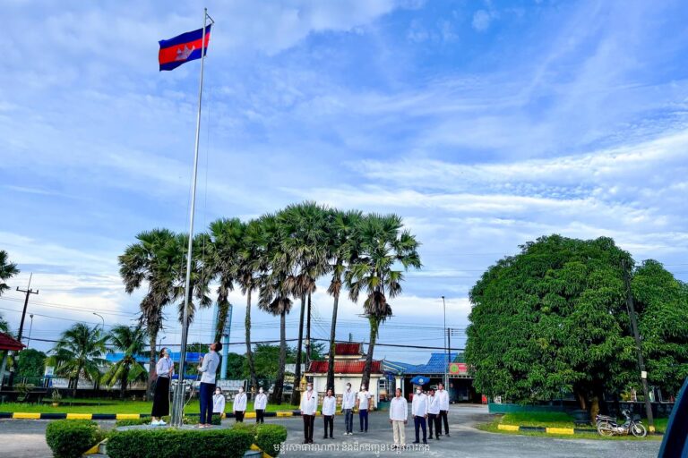 មន្ត្រីរាជការមន្ទីរសាធារណការ និងដឹកជញ្ជូនខេត្តកោះកុង គោរពទង់ជាតិ និងភ្លេងជាតិ នៃព្រះរាជាណាចក្រកម្ពុជា