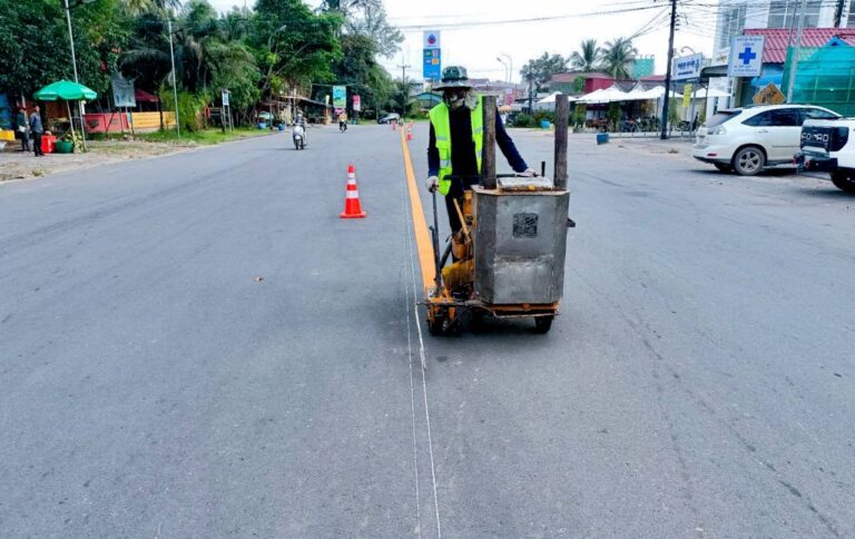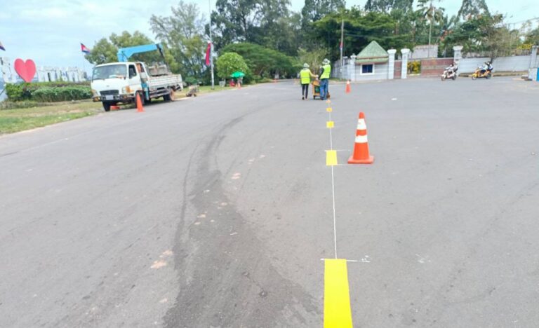 បន្តការងារគូសគំនូសចរាចរណ៍លើផ្លូវលេខ៩០០ និងផ្លូវលេខ៩០៦ អនុវត្តដោយមន្ទីរសាធារណការ និងដឹកជញ្ជូនខេត្តកោះកុង