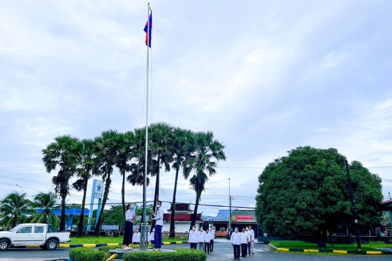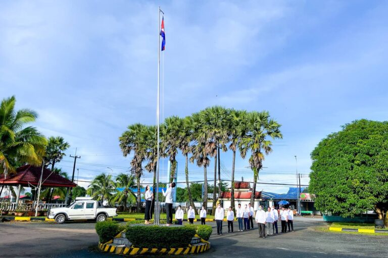 មន្ត្រីរាជការមន្ទីរសាធារណការ និងដឹកជញ្ជូនខេត្តកោះកុង គោរពទង់ជាតិ និងភ្លេងជាតិ នៃព្រះរាជាណាចក្រកម្ពុជា