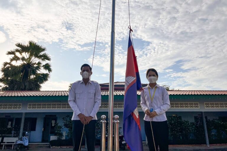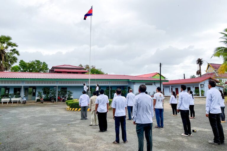 មន្ត្រីរាជការមន្ទីរសាធារណការ និងដឹកជញ្ជូនខេត្តកោះកុង គោរពទង់ជាតិ និងភ្លេងជាតិ នៃព្រះរាជាណាចក្រកម្ពុជា