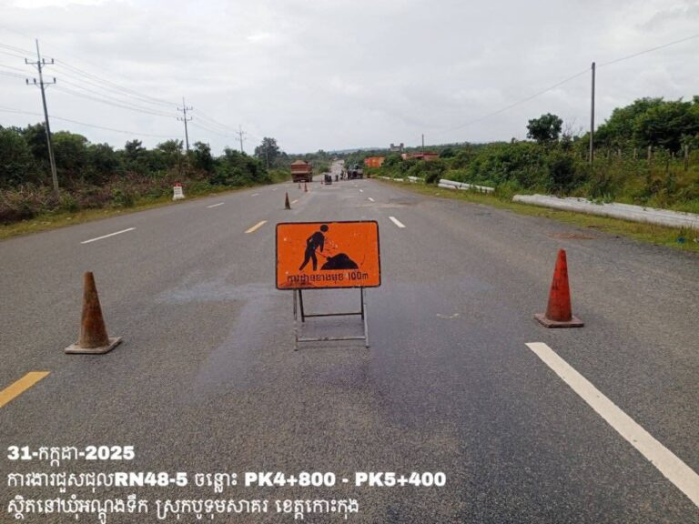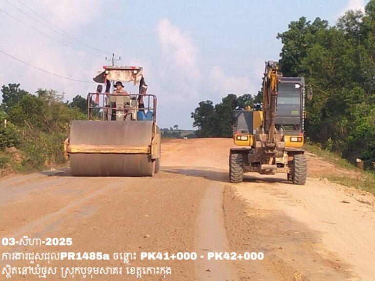 សកម្មភាពមន្ទីរសាធារណការ និងដឹកជញ្ជូនខេត្តកោះកុង បន្តអនុវត្តលើកំណាត់ផ្លូវជាតិលេខ៤៨-៥វិថីសាយភូថង និងផ្លូវខេត្តលេខ១៤៨៥អា