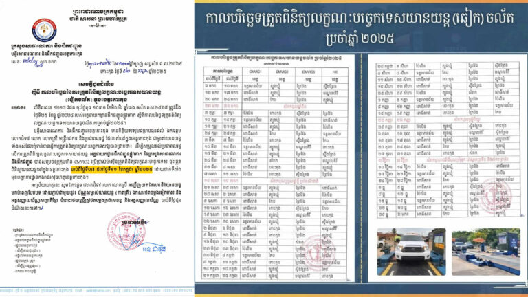 សេចក្តីជូនដំណឹងស្តីពីការត្រួតពិនិត្យលក្ខណៈបច្ចេកទេសយានយន្ត(ឆៀកចល័ត)