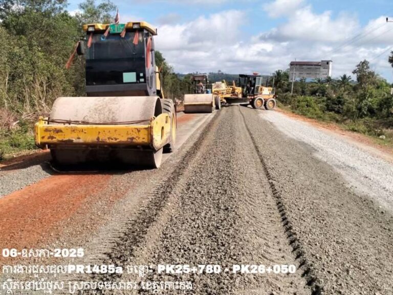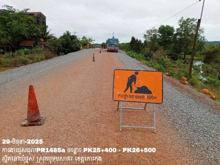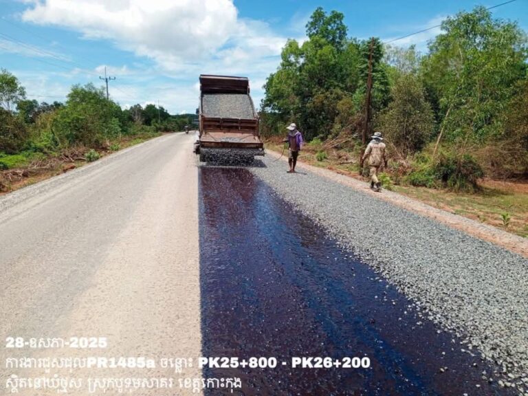 សកម្មភាពមន្ទីរសាធារណការ និងដឹកជញ្ជូនខេត្តកោះកុង បន្តអនុវត្តលើកំណាត់ផ្លូវខេត្តលេខ១៤៨៥អា៖