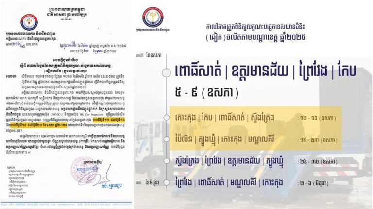 សេចក្តីជូនដំណឹងស្តីពីការត្រួតពិនិត្យលក្ខណៈបច្ចេកទេសយានយន្ត នៅខេត្តកោះកុង