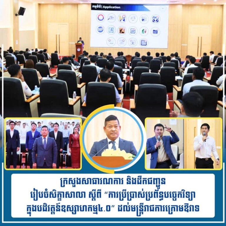 លោក គេង អុី និងកញ្ញា ហេង សុខសម្បត្តិ អនុប្រធានការិយាល័យកិច្ចការទូទៅ នៃមន្ទីរសាធារណការ និងដឹកជញ្ជូនខេត្តកោះកុង ចូលរួមក្នុងសិក្ខាសាលា ស្តីពី “ការប្រីប្រាស់ប្រព័ន្ធបច្ចេកវិទ្យាក្នុងបដិវត្តន៍ឧស្សាហកម្ម ៤.០” ដល់មន្ត្រីរាជការ