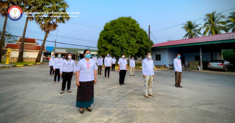 ចូលរួមគោរពទង់ជាតិ និងភ្លេងជាតិ នៃព្រះរាជាណាចក្រកម្ពុជា របស់មន្ត្រីរាជការ