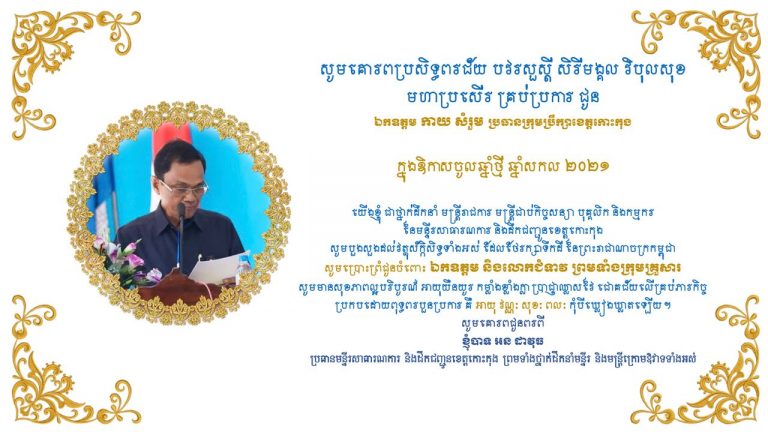 លោក អន ដាវុធ ប្រធានមន្ទីរសាធារណការ និងដឹកជញ្ជូនខេត្តកោះកុង ផ្ញើសារជូនពរ ឯកឧត្តម កាយ សំរួម ប្រធានក្រុមប្រឹក្សាខេត្ត