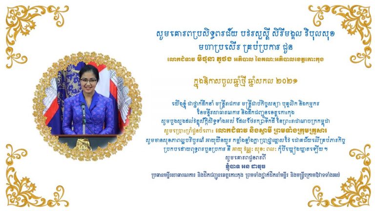 លោក អន ដាវុធ ប្រធានមន្ទីរសាធារណការ និងដឹកជញ្ជូនខេត្តកោះកុង ផ្ញើសារជូនពរ លោកជំទាវ មិថុនា ភូថង អភិបាល នៃគណៈអភិបាលខេត្តកោះកុង