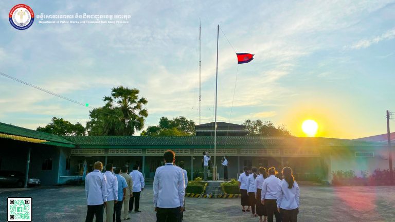 ចូលរួមគោរពទង់ជាតិ និងភ្លេងជាតិ នៃព្រះរាជាណាចក្រកម្ពុជា របស់មន្ត្រីរាជការ