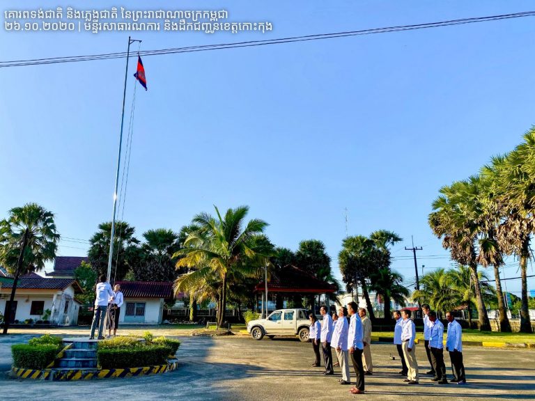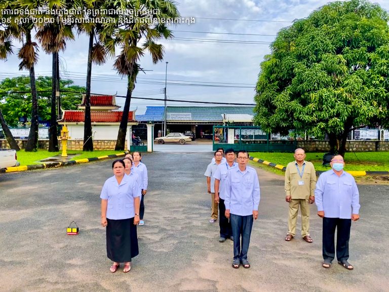 ចូលរួមគោរពទង់ជាតិ និងភ្លេងជាតិ នៃព្រះរាជាណាចក្រកម្ពុជា របស់មន្ត្រីរាជការមន្ទីរ