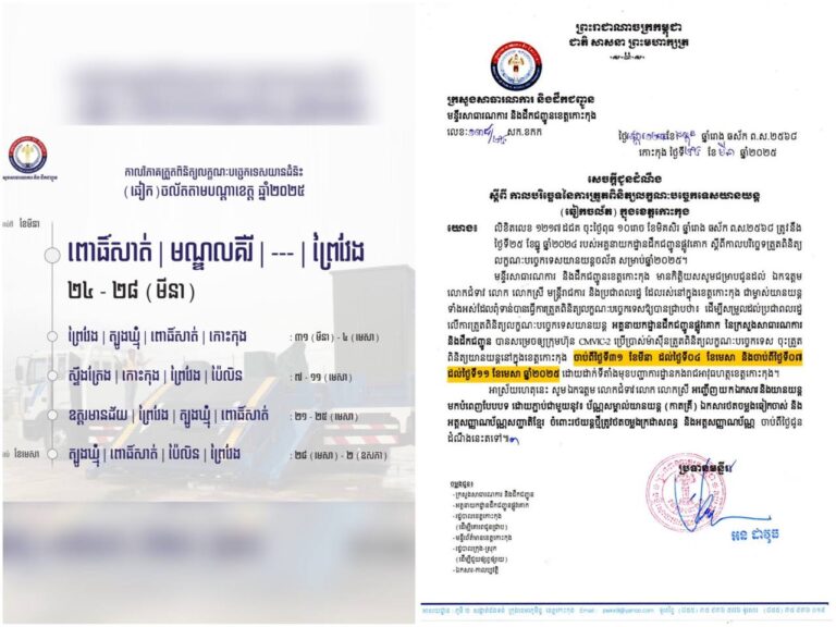 សេចក្តីជូនដំណឹងស្តីពីការត្រួតពិនិត្យលក្ខណៈបច្ចេកទេសយានយន្តនៅខេត្តកោះកុង