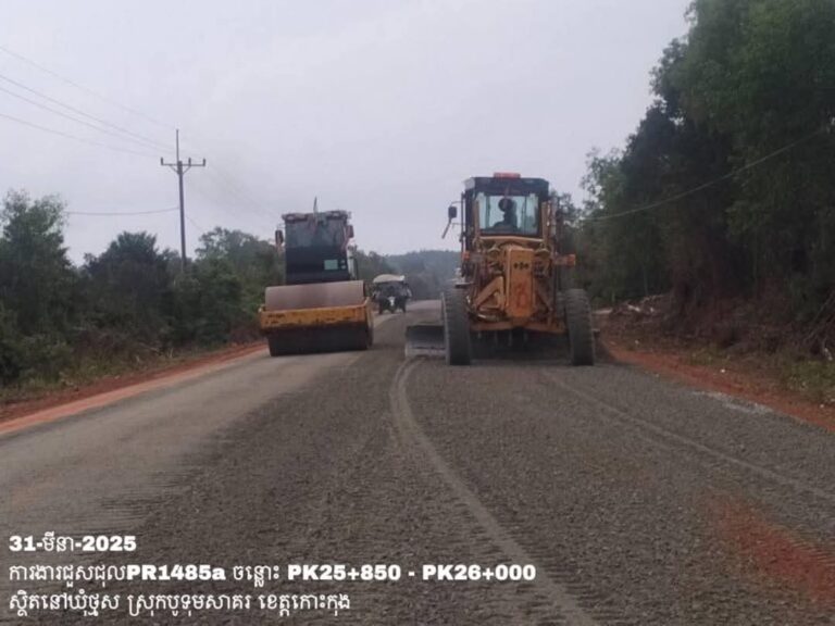 សកម្មភាពមន្ទីរសាធារណការ និងដឹកជញ្ជូនខេត្តកោះកុង បន្តអនុវត្តការងារជួសជុលខួបលើកំណាត់ផ្លូវជាតិលេខ៤៨-៥វិថីសាយភូថង ផ្លូវខេត្តលេខ១៤៨៥អា និងការងារថែទាំប្រចាំលើកំណាត់ផ្លូវខេត្តលេខ១៤៨៣៖