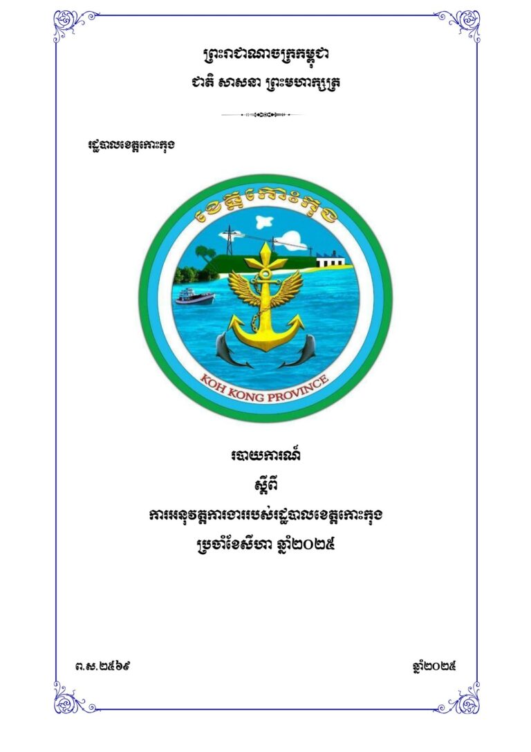 របាយការណ៍ ស្តីពីការអនុវត្តការងាររបស់រដ្ឋបាលខេត្តកោះកុង ប្រចាំខែសីហា ឆ្នាំ២០២៥