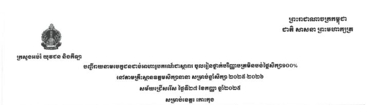 បញ្ជីរាយនាមបេក្ខជនខេត្តកោះកុង ជាប់ស្ថាពរអាហារូបករណ៍មិនបង់ថ្លៃ១០០% ចូលរៀននៅតាមគ្រឹះស្ថានឧត្ដមសិក្សា ឆ្នាំសិក្សា២០២៥-២០២៦
