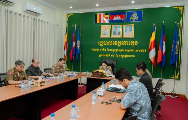 លោកជំទាវ ឈី វ៉ា អភិបាល នៃគណៈអភិបាលខេត្តកោះកុង បានអញ្ជើញជាអធិបតីដឹកនាំកិច្ចប្រជុំ ដើម្បីពិនិត្យ ពិភាក្សាការងារចាំចាច់មួយចំនួន ដែលរដ្ឋបាលខេត្តកោះកុង ត្រូវអនុវត្តបន្ត