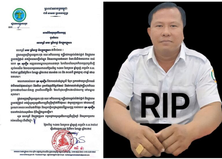 លោកជំទាវ ឈី វ៉ា អភិបាល នៃគណៈអភិបាលខេត្តកោះកុង បានអញ្ជើញគោរពវិញ្ញាណក្ខន្ធ និងចូលរួមរំលែកទុក្ខគ្រួសារសពរបស់ លោក ខុន សុខឿន អនុប្រធានមណ្ឌលសុខភាពនាងកុក