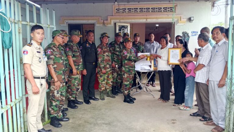 លោកឧត្តមសេនីយ៍ត្រី ជួន សុភ័ក្រ មេបញ្ជាការតំបន់ប្រតិបត្តិការសឹករងកោះកុង ជាប្រធានគណៈកម្មាធិការ ស អ ក ខេត្តកោះកុង បានចុះសួរសុខទុក្ខ ដល់គ្រួសារ នៃសពជាសមាជិក ស អ ក ដែលបានទទួលមរណភាព និងនាំយកថវិកាបេឡាមរណសង្គ្រោះ ចំនួន ៤លានរៀល និងអំណោយមនុស្សធម៌ ប្រគល់ ជូនគ្រួសារ នៃសពលោក សុឹម សុវណ្ណ(និវត្តជន)ជាសមាជិក ស អ ក នៅភូមិស្ទឹងវែង សង្កាត់ស្ទឹងវែង ក្រុងខេមរភូមិន្ទ ខេត្តកោះកុង