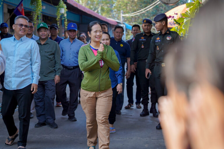 លោកជំទាវ ឈី វ៉ា អភិបាល នៃគណៈអភិបាលខេត្តកោះកុង បានអញ្ជើញស្វាគមន៍ឯកឧត្តម អ្នកឧកញ៉ា សួរ វីរៈ អគ្គនាយកក្រុមហ៊ុន វីរៈ ប៊ុនថាំ អេចប្រេស ក្នុងពិធីសម្ពោធផ្លូវបេតុងអាមេ ប្រវែង ២ ០០០ម៉ែត្រ ទទឹង ៨ម៉ែត្រ និងបំពាក់បង្គោលសូឡាបំភ្លឺផ្លូវសងខាង នៅភូមិព្រែកស្មាច់ ឃុំកោះស្តេច ស្រុកគិរីសាគរ ខេត្តកោះកុង