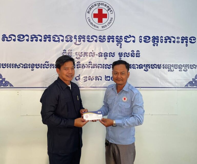 នាយឧត្ដមសេនីយ៍ តេង ឈួន អនុប្រធានកិត្តិយសសាខា បរិច្ចាគថវិកាចំនួន ២លានរៀល ជូនសាខាកាកបាទក្រហមកម្ពុជាខេត្តកោះកុង ដើម្បីប្រើប្រាស់ លើការងារមនុស្សធម៌