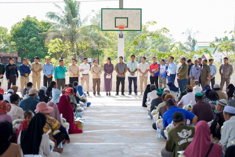 លោកជំទាវ ឈឺ វ៉ា អភិបាល នៃគណៈអភិបាលខេត្តកោះកុង ទទួលស្វាគមន៍ ឯកឧត្តម រ៉ូហ្វី អូស្មាន តំណាងរាស្ត្រមណ្ឌលខេត្តពោធិ៍សាត់ និងជាអនុប្រធានគណៈចលនាសាសនិកឥស្លាមកម្ពុជា និងឯកឧត្តម ដុំ យុហៀន តំណាងរាស្ត្រមណ្ឌលខេត្តកោះកុង ក្នុងពិធីចែកអំណោយជូនប្រជាពលរដ្ឋចំនួន ៣០០ គ្រួសារ ស្ថិតនៅក្នុងភូមិ៤ សង្កាត់ដងទង់ ក្រុងខេមរភូមិន្ទ ខេត្តកោះកុង