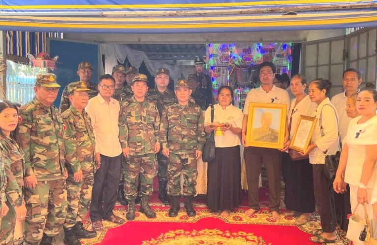 លោកឧត្តមសេនីយ៍ត្រី ជួន សុភ័ក្រ មេបញ្ជាការតំបន់ប្រតិបត្តិការសឹករងកោះកុង ជាប្រធានគណៈកម្មាធិការ ស អ ក ខេត្តកោះកុង បានអញ្ជើញចុះសួរសុខទុក្ខ និងនាំយកថវិកាបេឡាមរណសង្គ្រោះ ៤លានរៀល និងអំណោយប្រគល់ ជូនដល់គ្រួសារនៃសពលោក ផុន សុភីន(និវត្តជន)ជាសមាជិក ស អ ក នៅភូមិ១ សង្កាត់ស្មាច់មានជ័យ ក្រុងខេមរភូមិន្ទ ខេត្តកោះកុង