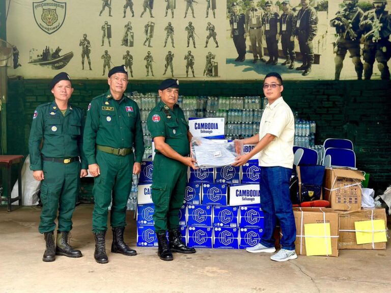លោកឧត្ដមសេនីយ៍ទោ គង់ មនោ ស្នងការនគរបាលខេត្តកោះកុង បានទទួលអំណោយពីលោក ញៀប វង្សា អគ្គនាយកក្រុមហ៊ុន អេសម៉ាស្ទ័រ ធូល អំណោយរួមមាន ស្បែកជើងកវែង ១០៥ឈុត និងទឹកបរិសុទ្ធ ៥០កេស