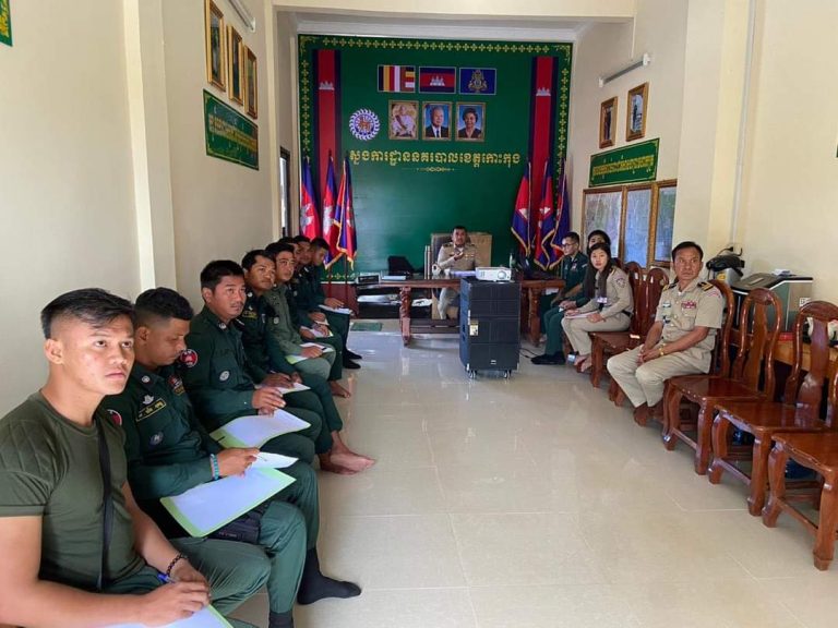 លោកឧត្តមសេនីយ៍ទោ គង់ មនោ ស្នងការនគរបាលខេត្ត បានធ្វើបទបង្ហាញ ស្តីពី ការប្រេីប្រាស់អាវុធខ្លី និងការណែរនាំនៅទ្រឹស្ដីសំខាន់ៗមួយចំនួន សម្រាប់គ្រូបង្គោល កងអន្តរាគមន៍ពិសេស នៃស្នងការដ្ឋាននគរបាលខេត្តកោះកុង