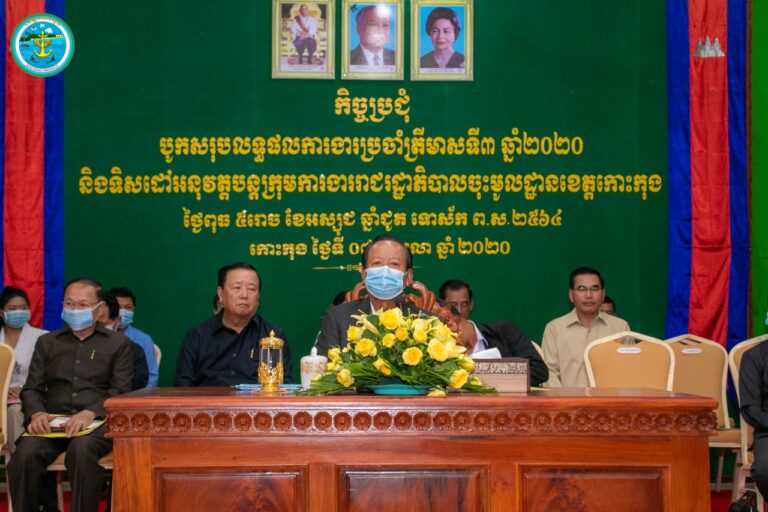 លោកជំទាវ មិថុនា ភូថង អភិបាល នៃគណៈអភិបាលខេត្តកោះកុង បានអញ្ជើញស្វាគមន៍សម្តេចពិជ័យសេនា ទៀ បាញ់ ឧបនាយករដ្ឋមន្ត្រី រដ្ឋមន្ត្រីក្រសួងការពារជាតិ និងជាប្រធានក្រុមការងាររាជរដ្ឋាភិបាលចុះមូលដ្ឋាខេត្តកោះកុង ក្នុងកិច្ចប្រជុំបូកសរុបលទ្ធផលការងារ០៩ខែ ឆ្នាំ២០២០ និងទិសដៅអនុវត្តបន្តរបស់ក្រុមការងាររាជរដ្ឋាភិបាលចុះមូលដ្ឋានខេត្តកោះកុង