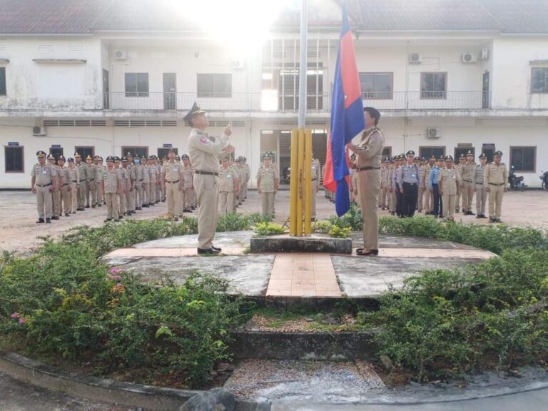 លោកឧត្ដមសេនីយ៍ត្រី ស សារ៉ាត ស្នងការរង ផែនការងារសេនាធិការ តំណាងលោកឧត្ដមសេនីយ៍ស្នងការនគរបាលខេត្តកោះកុង បានដឹកនាំកងកម្លាំង គោរពទង់ជាតិ