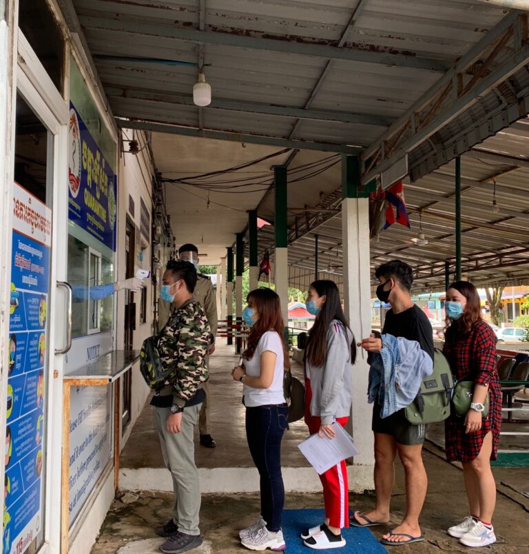 ក្រុមការងារចត្តាឡីស័ក នៃមន្ទីរសុខាភិបាលខេត្តកោះកុង បានធ្វើការត្រួតពិនិត្យកំដៅអ្នកបើកបរដឹកទំនិញចេញ-ចូលតាមច្រកព្រំដែនអន្តរជាតិចាំយាម ព្រមជាមួយនឹងការបាញ់ថ្នាំសំលាប់មេរោគទៅលើរថយន្តដឹកទំនិញផងដែរ។