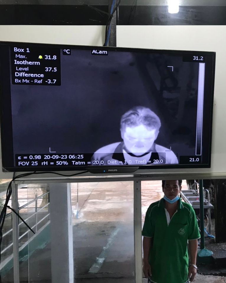 ក្រុមការងារចត្តាឡីស័ក នៃមន្ទីរសុខាភិបាលខេត្តកោះកុង បានធ្វើការត្រួតពិនិត្យកំដៅអ្នកបើកបរដឹកទំនិញចេញ-ចូលតាមច្រកព្រំដែនអន្តរជាតិចាំយាម ព្រមជាមួយនឹងការបាញ់ថ្នាំសំលាប់មេរោគទៅលើរថយន្តដឹកទំនិញផងដែរ។