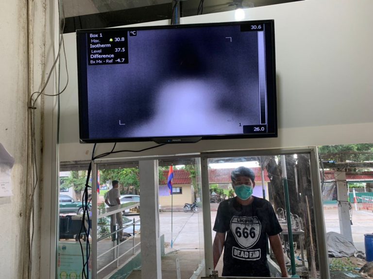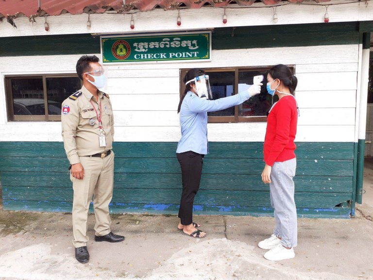 ក្រុមការងារចត្តាឡីស័ក នៃមន្ទីរសុខាភិបាលខេត្តកោះកុង បានធ្វើការត្រួតពិនិត្យកំដៅអ្នកបើកបរដឹកទំនិញចេញ-ចូលតាមច្រកព្រំដែនអន្តរជាតិចាំយាម ព្រមជាមួយនឹងការបាញ់ថ្នាំសំលាប់មេរោគទៅលើរថយន្តដឹកទំនិញផងដែរ។