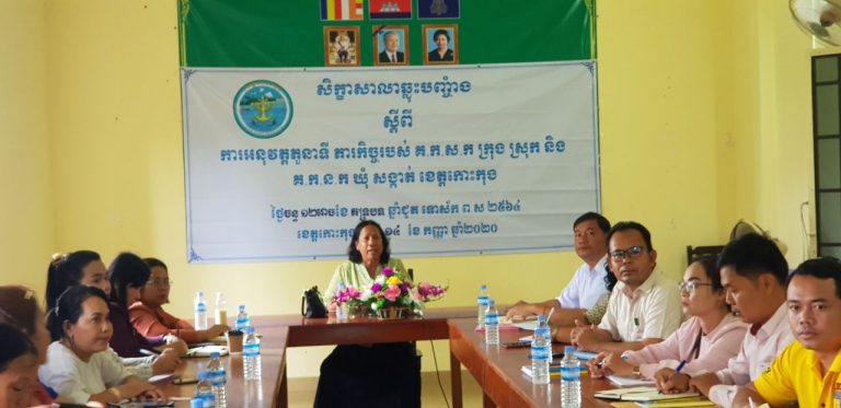 លោកជំទាវ សរ ស៊ីមអ៉ីម សមាជិកក្រុមប្រឹក្សាខេត្ត និងជាប្រធាន គ.ក.ស.ក. របស់ក្រុមប្រឹក្សាខេត្ត បានអញ្ជើញ ជាអធិបតី ក្នុងសិក្ខាសាលា រំលឹកឡើងវិញ ស្តីពីតួនាទី ភារកិច្ច និងរបៀបរបបការងារគណៈកម្មាធិការពិគ្រោះយោបល់កិច្ចស្ត្រី និងកុមារ របស់ក្រុមប្រឹក្សាក្រុង ស្រុក និងតួនាទី ភារកិច្ចរបស់គណៈកម្មាធិការទទួលបន្ទុកកិច្ចការនារី និងកុមារឃុំ សង្កាត់។