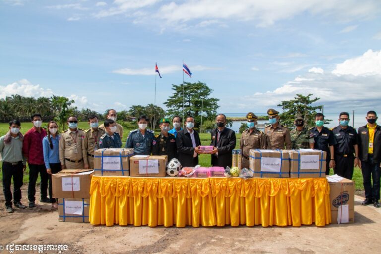 ខេត្តកោះកុង-ខេត្តត្រាត៖ លោក សំឃីត វៀន អភិបាលរង នៃគណៈអភិបាលខេត្តកោះកុង និងជាតំណាង លោកជំទាវ មិថុនា ភូថង អភិបាលខេត្ត បានអញ្ជើញទទួលថ្នាំពេទ្យ និងសម្ភារកីឡាមួយចំនួន ពីបញ្ជាការដ្ឋានកងទ័ពជើងទឹកយុទ្ធភូមិភាគទី១ ប្រទេសថៃ ក្នុងការពង្រឹងកិច្ចសហប្រតិបត្តិការល្អ រវាងគ្នា និងរួមគ្នាការពារ ទប់ស្កាត់ឲ្យមានប្រសិទ្ធភាពខ្ពស់ពីការរីករាលដាលនៃជំងឺកូវីដ-១៩។