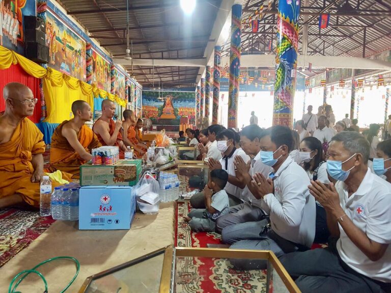 លោក ឈួន យ៉ាដា នាយកប្រតិបត្តិសាខា បានដឹកនាំក្រុមប្រតិបត្តិសាខា ព្រមទាំងពុទ្ធបរិស័ទជាច្រើននាក់ បានអញ្ជើញបូជាទៀន ធូប ផ្កាភ្ញី ថ្វាយព្រះរតនត្រ័យ និងនាំយកគ្រឿងឧបភោគបរិភោគ ចង្ហាន់បិណ្ឌបាត្រ និងបច្ច័យចូលរួមកាន់បិណ្ឌវេនទី៤ នៅវត្តជោត្តញ្ញាណរាម នៅភូមិបឹងឃុនឆាង សង្កាត់ស្មាច់មានជ័យ ក្រុងខេមរភូមិន្ទ ខេត្តកោះកុង ។