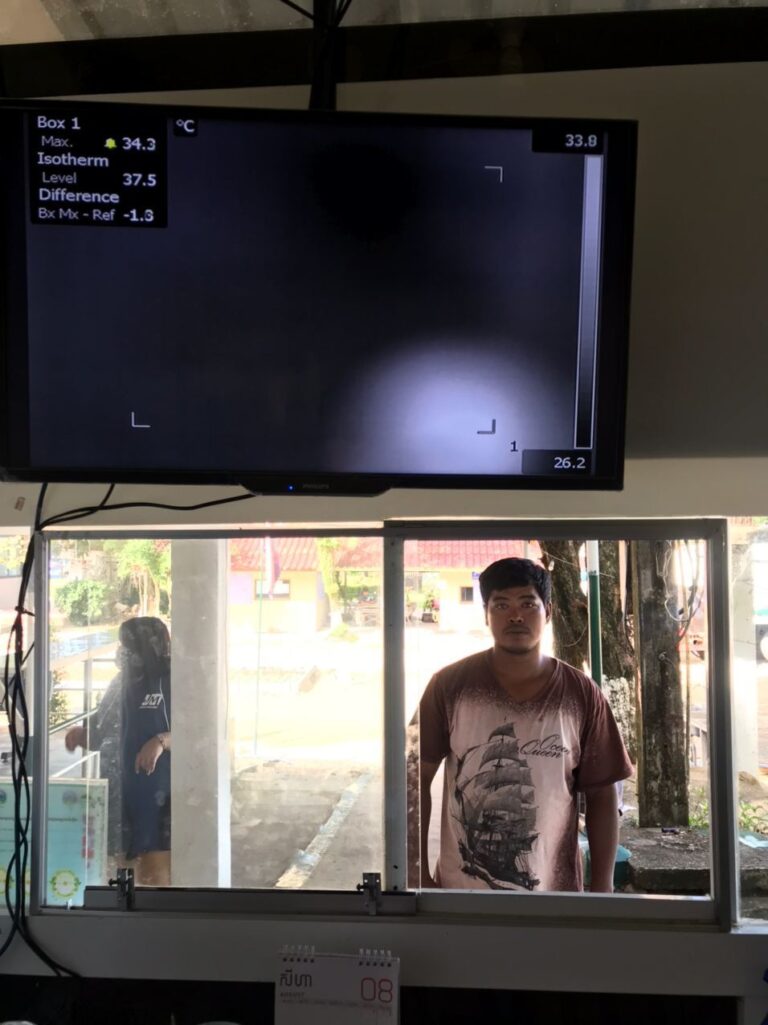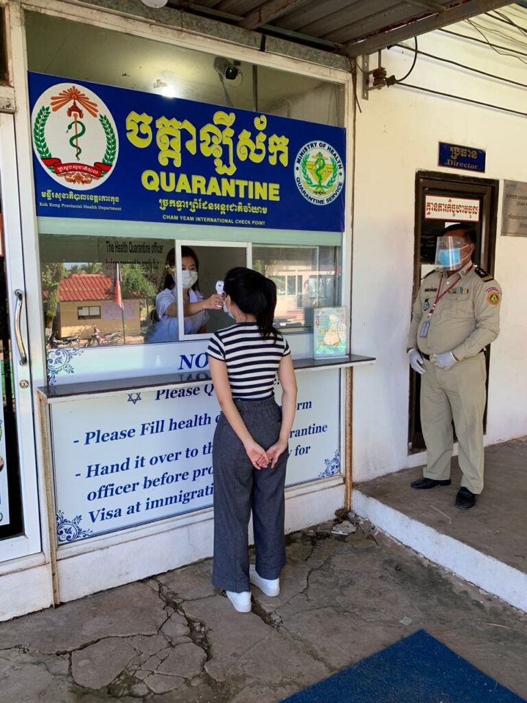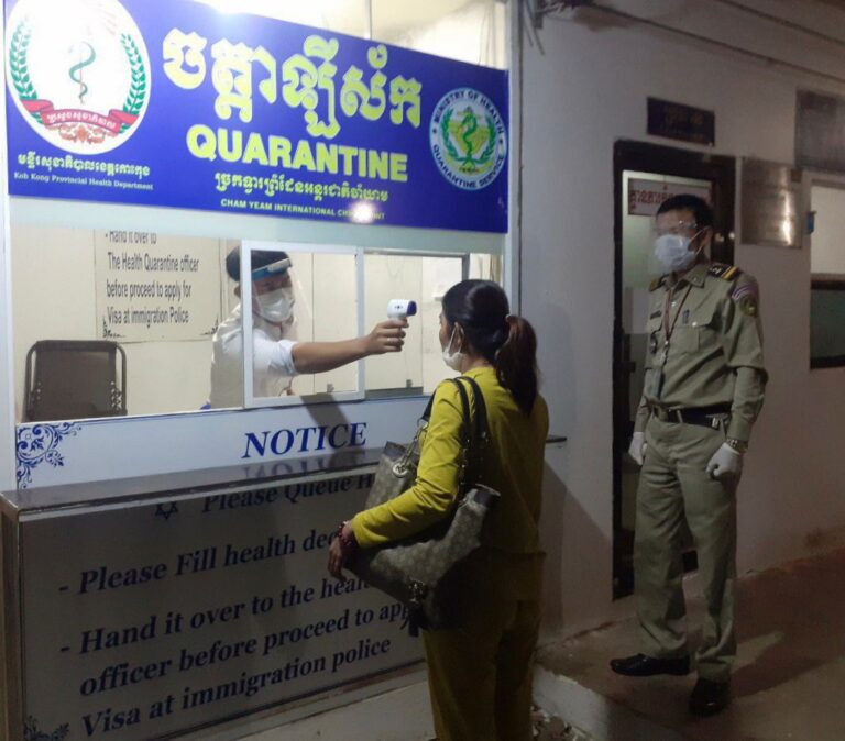 ក្រុមការងារចត្តាឡីស័ក នៃមន្ទីរសុខាភិបាលខេត្តកោះកុង បានធ្វើការត្រួតពិនិត្យកំដៅអ្នកបើកបរដឹកទំនិញចេញ-ចូលតាមច្រកព្រំដែនអន្តរជាតិចាំយាម ព្រមជាមួយនឹងការបាញ់ថ្នាំសំលាប់មេរោគទៅលើរថយន្តដឹកទំនិញផងដែរ។