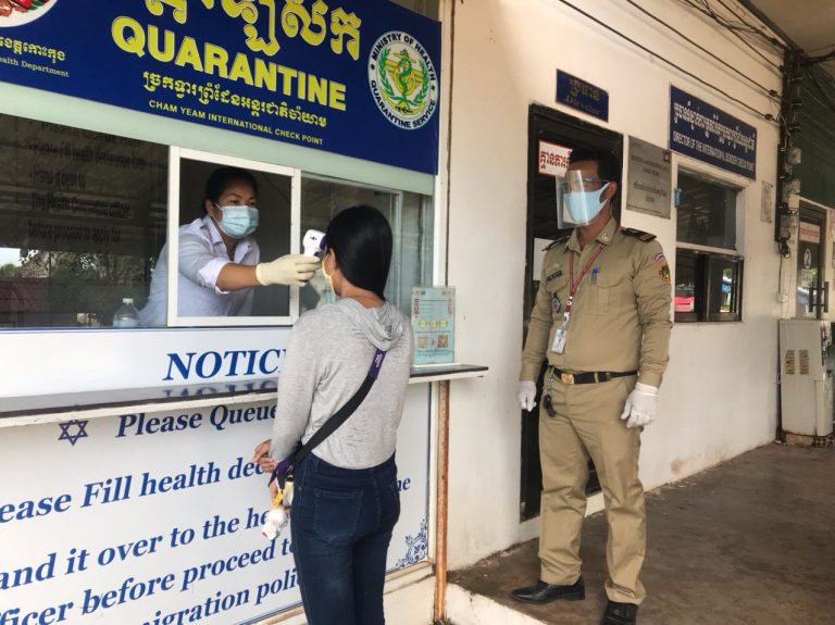 ក្រុមការងារចត្តាឡីស័ក នៃមន្ទីរសុខាភិបាលខេត្តកោះកុង បានធ្វើការត្រួតពិនិត្យកំដៅអ្នកបើកបរដឹកទំនិញចេញ-ចូលតាមច្រកព្រំដែនអន្តរជាតិចាំយាម ព្រមជាមួយនឹងការបាញ់ថ្នាំសំលាប់មេរោគទៅលើរថយន្តដឹកទំនិញផងដែរ។