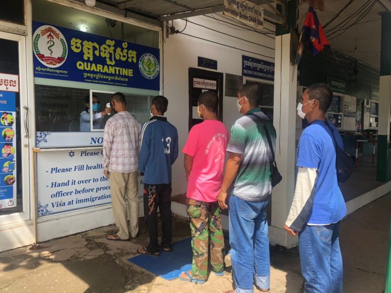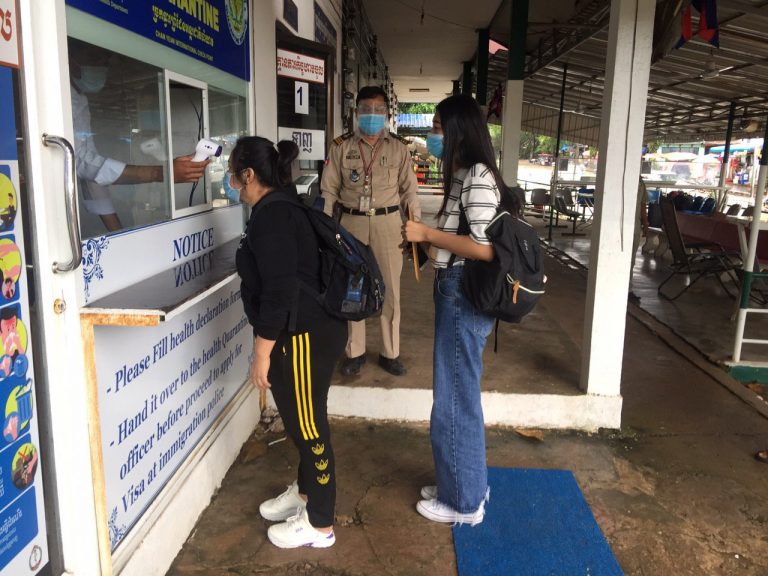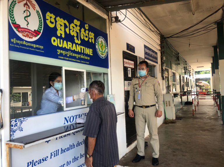 ក្រុមការងារចត្តាឡីស័ក នៃមន្ទីរសុខាភិបាលខេត្តកោះកុង បានធ្វើការត្រួតពិនិត្យកំដៅអ្នកបើកបរដឹកទំនិញចេញ-ចូលតាមច្រកព្រំដែនអន្តរជាតិចាំយាម ព្រមជាមួយនឹងការបាញ់ថ្នាំសំលាប់មេរោគទៅលើរថយន្តដឹកទំនិញផងដែរ។