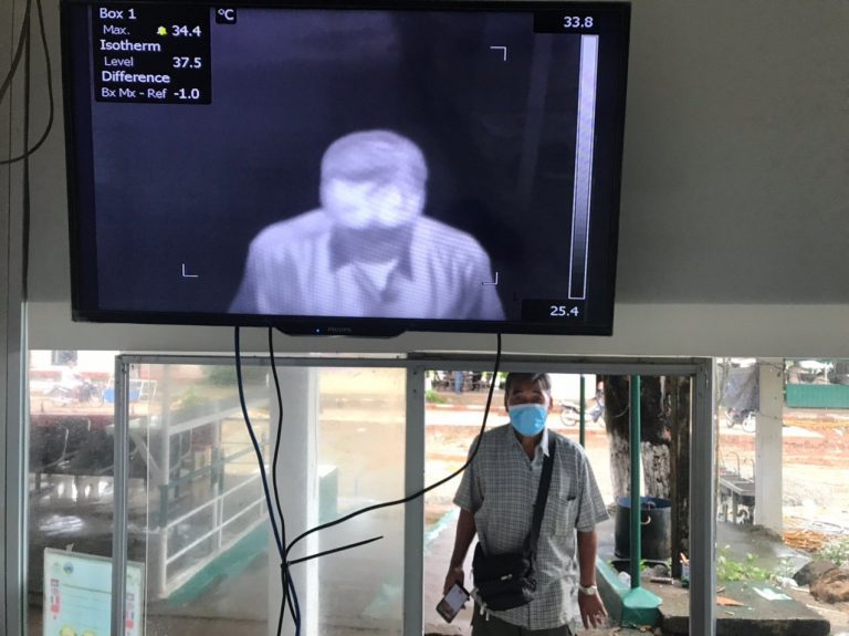ក្រុមការងារចត្តាឡីស័ក នៃមន្ទីរសុខាភិបាលខេត្តកោះកុង បានធ្វើការត្រួតពិនិត្យកំដៅអ្នកបើកបរដឹកទំនិញចេញ-ចូលតាមច្រកព្រំដែនអន្តរជាតិចាំយាម ព្រមជាមួយនឹងការបាញ់ថ្នាំសំលាប់មេរោគទៅលើរថយន្តដឹកទំនិញផងដែរ។