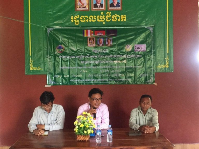 លោក សុខ សំអាត អនុប្រធានមន្ទីរ និងជាអនុប្រធានគ្រប់គ្រងអនុកម្មវិធី ASPIRE ប្រចាំខេត្តកោះកុង បានអញ្ជើញជាអធិបតី ក្នុងកម្មវិធីផ្សព្វផ្សាយបច្ចេកទេសកសិកម្មថ្មីដែលធន់ទៅនឹងការប្រែប្រួលអាកាសធាតុ (ASPIRE) ប្រចាំខេត្តកោះកុង បានរៀបចំកិច្ចប្រជុំស្តីពី ការចងក្រងបណ្តុំអាជីវកម្ម និងរៀបចំរចនាសម្ព័ន្ធគ្រប់គ្រង សំរាប់បណ្តុំអាជីវកម្មស្វាយចន្ទី នៅសាលប្រជុំឃុំជីផាត ស្ថិតក្នុងភូមិជីផាត ឃុំជីផាត ស្រុកថ្មបាំង