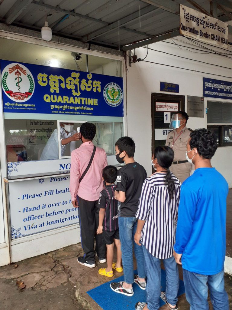 ក្រុមការងារចត្តាឡីស័ក នៃមន្ទីរសុខាភិបាលខេត្តកោះកុង បានធ្វើការត្រួតពិនិត្យកំដៅអ្នកបើកបរដឹកទំនិញចេញ-ចូលតាមច្រកព្រំដែនអន្តរជាតិចាំយាម ព្រមជាមួយនឹងការបាញ់ថ្នាំសំលាប់មេរោគទៅលើរថយន្តដឹកទំនិញផងដែរ។