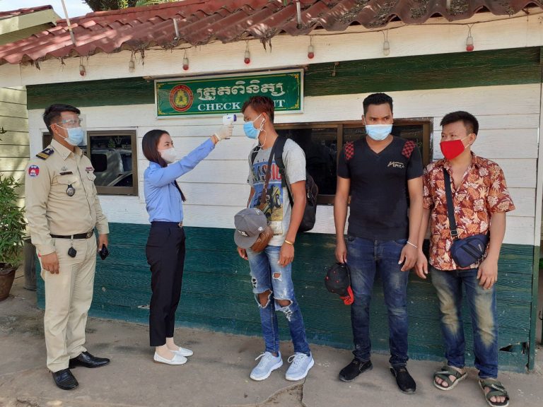 ក្រុមការងារចត្តាឡីស័ក នៃមន្ទីរសុខាភិបាលខេត្តកោះកុង បានធ្វើការត្រួតពិនិត្យកំដៅអ្នកបើកបរដឹកទំនិញចេញ-ចូលតាមច្រកព្រំដែនអន្តរជាតិចាំយាម ព្រមជាមួយនឹងការបាញ់ថ្នាំសំលាប់មេរោគទៅលើរថយន្តដឹកទំនិញផងដែរ។