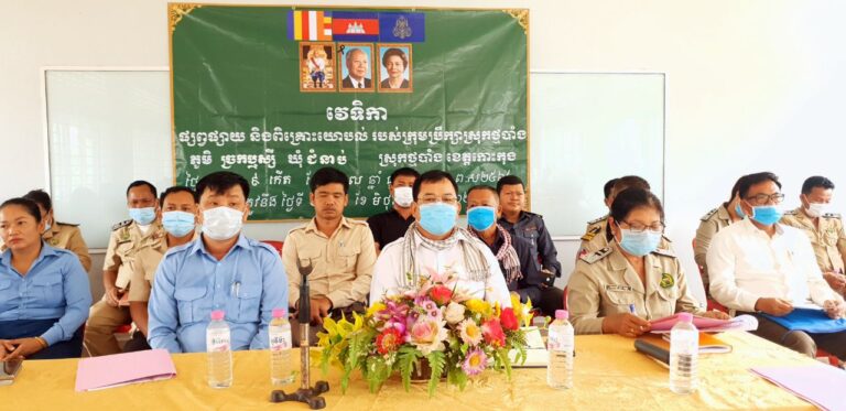 ឯកឧត្តម ប៊ុន បៀវ សមាជិកក្រុមប្រឹក្សាខេត្តកោះកុង បានអញ្ជើញជាអធិបតី ក្នុងវេទិការបស់ក្រុមប្រឹក្សាស្រុកថ្មបាំង នៅភូមិច្រកឬស្សី ឃុំជំនាប់ ស្រុកថ្មបាំង ខេត្តកោះកុង។