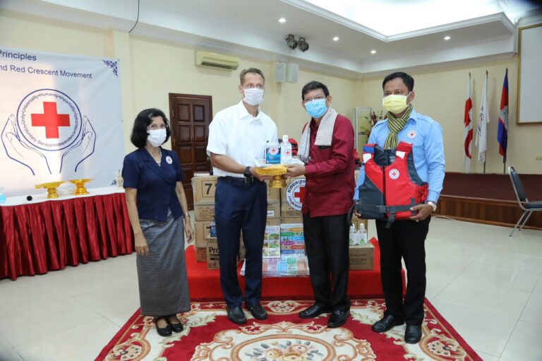 លោកឧត្តមសេនីយ៍ត្រី ថុង ណារុង សមាជិកគណៈកម្មាធិការ សាខាកាកបាទក្រហមកម្ពុជា ខេត្តកោះកុង ទទួលបន្ទុកការងារគ្រប់គ្រងគ្រោះមហន្តរាយ និងលោក ឈួន យ៉ាដា នាយកប្រតិបត្តសាខា បានចូលរួមពិធីប្រគល់ ទទួលអំណោយ ជាសម្ភារអប់រំផ្សព្វផ្សាយ ទប់ស្កាត់ជំងឺកូវីដ១៩ និងអាវពោងសុវត្ថិភាព ក្រោមអធិបតីភាព លោកជំទាវ ពុំ ចន្ទីនី អគ្គលេខាធិការ កាកបាទក្រហមកម្ពុជា ។