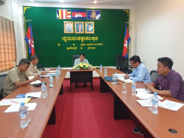 លោក លឹម សាវាន់ នាយករដ្ឋបាលសាលាខេត្ត បានអញ្ជើញដឹកនាំកិច្ចប្រជុំសម្របសម្រួលលើការប្រតិភូកម្មសេវារបស់វិស័យកសិកម្ម រុក្ខាប្រមាញ់ និងនេសាទ ដោយមានការចូលរួមពី មន្ទីរកសិកម្ម រុក្ខាប្រមាញ់ និងនេសាទ និងអង្គភាពច្រកចេញចូលតែមួយ នៃរដ្ឋបាលខេត្តកោះកុង