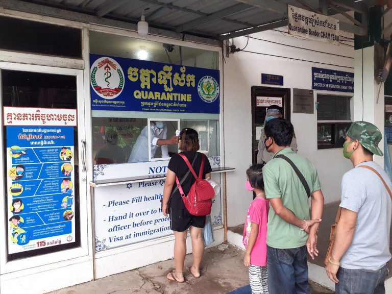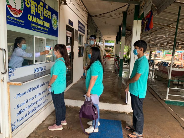 ក្រុមការងារចត្តាឡីស័ក នៃមន្ទីរសុខាភិបាលខេត្តកោះកុង បានធ្វើការត្រួតពិនិត្យកំដៅអ្នកបើកបរដឹកទំនិញចេញ-ចូលតាមច្រកព្រំដែនអន្តរជាតិចាំយាម ព្រមជាមួយនឹងការបាញ់ថ្នាំសំលាប់មេរោគទៅលើរថយន្តដឹកទំនិញផងដែរ។
